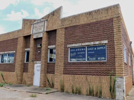 The Midwest Equitable Meter Company building, 3130 Charles Page Boulevard, was designed by Bruce Goff and built in 1929. The modest one-story, commercial warehouse has